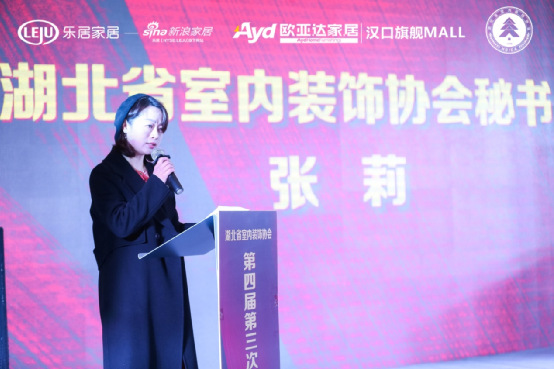 湖北省室内装饰协会秘书长张莉在会上进行了工作总结,2019年3月湖北省室内装饰协会举办了湖北家装行业信用平台建设发布会,旨在防范和化解重大风险的排查,让不守信用、不守法的企业无法生存,4月,湖北家装信用平台也在武汉国际会展中心盛大开幕,同年,第一届湖北工匠杯技能大赛成功举办,大赛依托协会、企业的专业平台和学校的学科优势,深度开展校的交流合作,同年湖北室内装饰协会第四届第二次大会召开,湖北省室内装饰协会装饰建材分会、暖通分会正式成立。2021年3月,湖北装饰行业诚信交流大会隆重举行,共同探讨后疫情时代装饰行业守法经营、诚信经验的新思路和新做法,6月第二届湖北“工匠杯”再次开赛,得到了各会员单位的大力支持和响应,协会一如既往利用协会平台优势,促进企业间的沟通交流,通过资源整合,助力行业高质量发展。