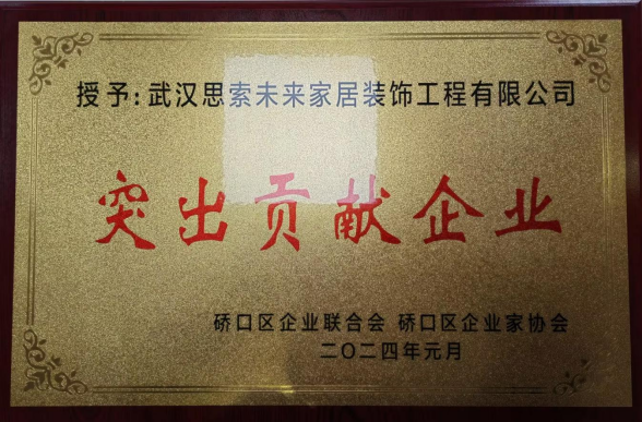 近日,在硚口区企业联合会、硚口区企业家协会第五届六次会员大会上,湖北省室内装饰协会会员单位武汉思索未来家居装饰工程有限公司被硚口区企业联合会、硚口区企业家协会(以下简称“两会”)评选为“突出贡献企业”并授予牌匾,这是武汉思索未来家居装饰工程有限公司2024年荣获的第一项企业荣誉。